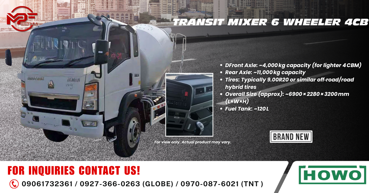 | Model | HOWO TRANSIT MIXER 6 WHEELER 4CB |